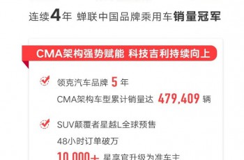 架构造车持续发力 吉利汽车1-5月总销量530074辆